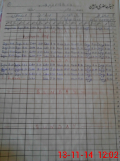 | CNIC | Full Name | Designation | R/C | Absence During Last Calender Month |