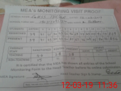 | Certified that this School was Inspected by the Undersigned MEA/DMO Today and the Information Stated Above is as Per Record. | |||||