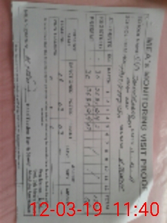 | Monitoring Date: 12-03-2019 | Start Time: 12-03-2019 11:34 AM | End Time: 12-03-2019 12:08 PM | Name of MEA: MU**** AS**** | |