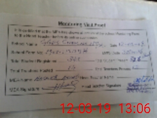 | Monitoring Date: 12-03-2019 | Start Time: 12-03-2019 12:12 PM | End Time: 12-03-2019 01:07 PM | Name of MEA: NA**** AH**** BN**** | |