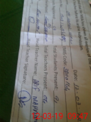 | Attendance Register | Head Teacher | MEA with School | Visit Proof |