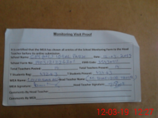 | EMIS Code: 35430111 | Name of School: GES MC ALLAMA IQBAL PARK | |||