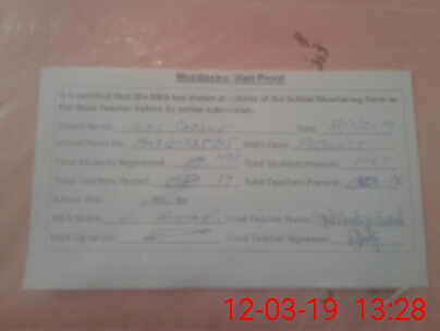| Certified that this School was Inspected by the Undersigned MEA/DMO Today and the Information Stated Above is as Per Record. | |||||