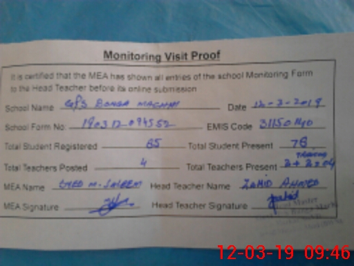 | EMIS Code: 31150140 | Name of School: GPS BUNGA MACHI | |||
