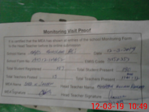 | Certified that this School was Inspected by the Undersigned MEA/DMO Today and the Information Stated Above is as Per Record. | |||||