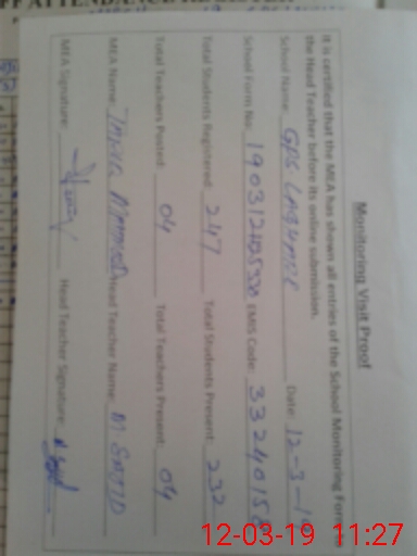 | EMIS Code: 33240158 | Name of School: GPS LAGHARI | |||