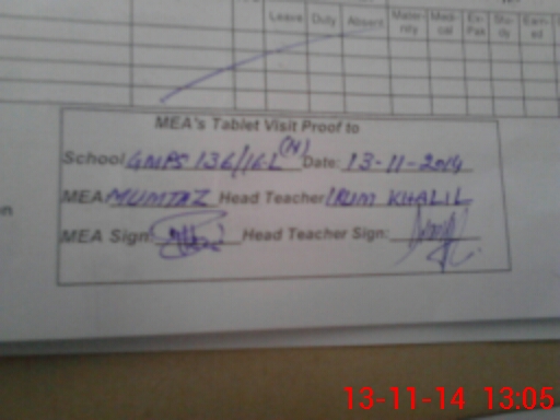 | Attendance Register | Head Teacher | MEA with School | Visit Proof |