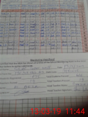| Attendance Register | Head Teacher | MEA with School | Visit Proof |