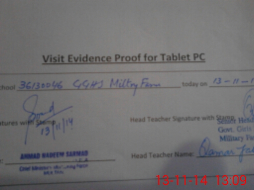 | EMIS Code: 36130046 | Name of School: GGHS MILITARY FARM MULTAN | |||