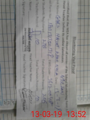| Certified that this School was Inspected by the Undersigned MEA/DMO Today and the Information Stated Above is as Per Record. | |||||