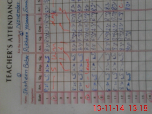 | Total no. of Classrooms: 8 No. of Classrooms Used for Teaching: 8 No. of Classrooms Storing Old Furniture, FTBs, etc: 0Comments if Any: Shaista Naz in stead of sahidata nal 2 Samia Naz in stead of saima nal |