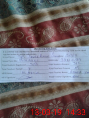 | Certified that this School was Inspected by the Undersigned MEA/DMO Today and the Information Stated Above is as Per Record. | |||||