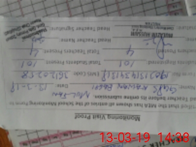 | Attendance Register | Head Teacher | MEA with School | Visit Proof |