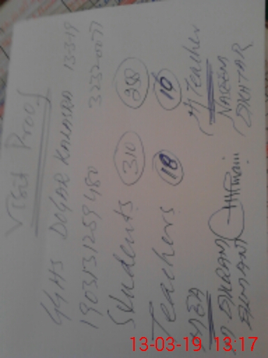 | Total no. of Classrooms: 13 No. of Classrooms Used for Teaching: 13 No. of Classrooms Storing Old Furniture, FTBs, etc: 0Comments if Any: 0 |