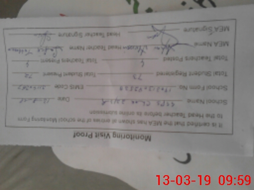 | Remarks (Use Separate Page if Required): Head teacher stated that NSB record was sent to Dy DEO for approval of sanction of some amount | |||||