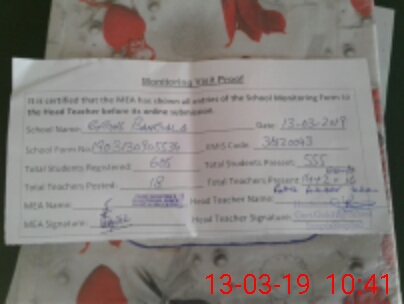 | Attendance Register | Head Teacher | MEA with School | Visit Proof |
