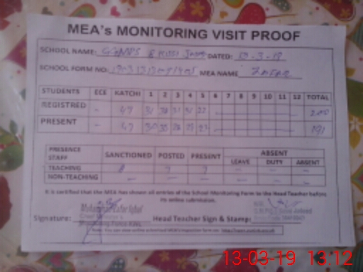 | EMIS Code: 36410343 | Name of School: GMPS 8-KASSI JADEED, KABIRWALA | |||