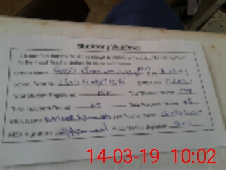 | Monitoring Date: 14-03-2019 | Start Time: 14-03-2019 09:09 AM | End Time: 14-03-2019 10:03 AM | Name of MEA: NA**** AH**** BN**** | |