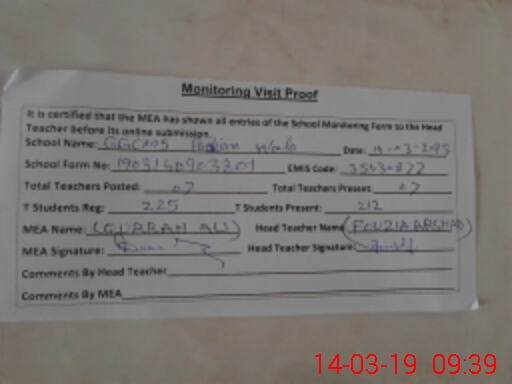 | Certified that this School was Inspected by the Undersigned MEA/DMO Today and the Information Stated Above is as Per Record. | |||||