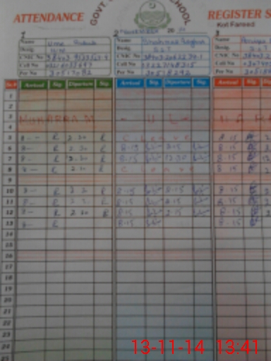 | CNIC | Full Name | Designation | R/C | Absence During Last Calender Month |