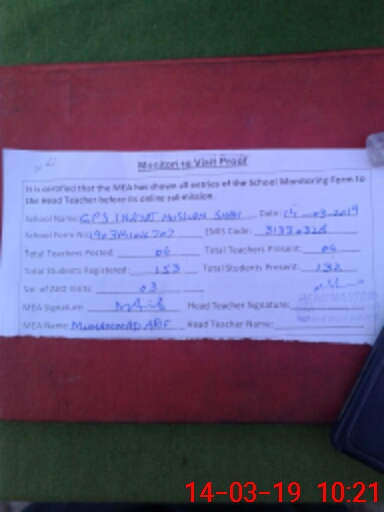 | EMIS Code: 31330328 | Name of School: GPS INAYAT HUSSIAN SHAH | |||