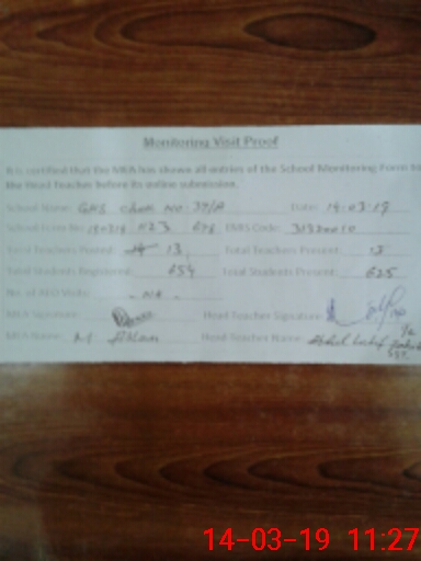 | EMIS Code: 31320010 | Name of School: GHS CHAK NO.37/A | |||