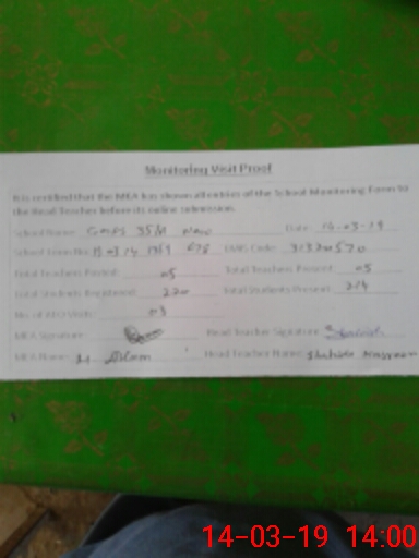 | EMIS Code: 31320570 | Name of School: GMPS CHAK 35/A NEW | |||