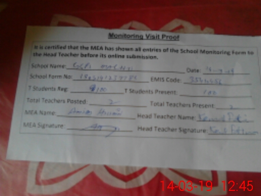 | Certified that this School was Inspected by the Undersigned MEA/DMO Today and the Information Stated Above is as Per Record. | |||||
