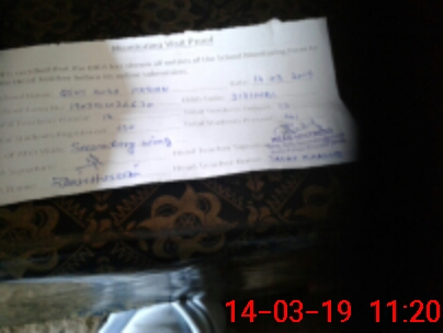 | School Visited by School Health & Nutrition Supervisor (No. of Visits) | 1 | Name1: | Shamshad Hussain | Name2: | None |