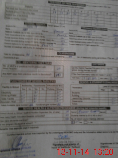 | School Visited by School Health & Nutrition Supervisor (No. of Visits) | 1 | Name1: | REHANA SHARIF | Name2: | NIL |