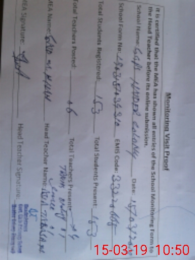 | Certified that this School was Inspected by the Undersigned MEA/DMO Today and the Information Stated Above is as Per Record. | |||||