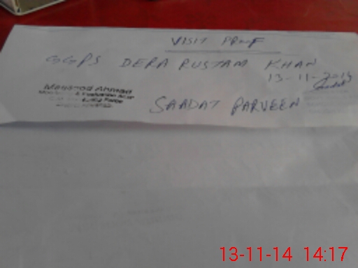 | EMIS Code: 38210521 | Name of School: GGPS DERA RUSTAM KHAN | |||