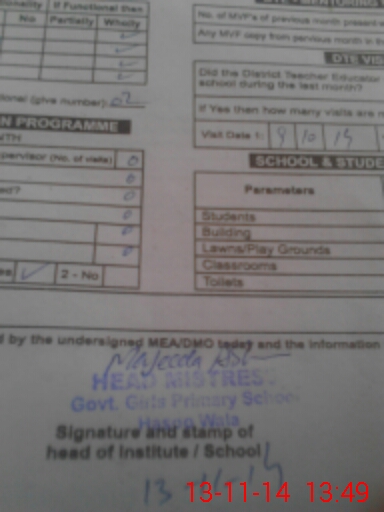 | Certified that this School was Inspected by the Undersigned MEA/DMO Today and the Information Stated Above is as Per Record. | |||||