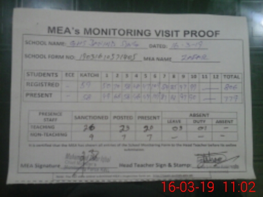 | Certified that this School was Inspected by the Undersigned MEA/DMO Today and the Information Stated Above is as Per Record. | |||||