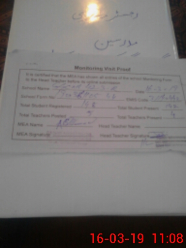 | Certified that this School was Inspected by the Undersigned MEA/DMO Today and the Information Stated Above is as Per Record. | |||||