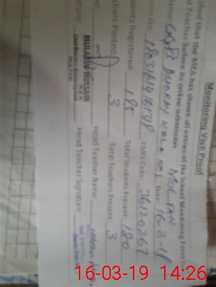 | Certified that this School was Inspected by the Undersigned MEA/DMO Today and the Information Stated Above is as Per Record. | |||||