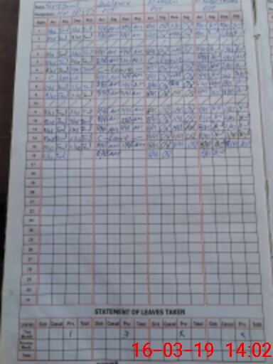 | CNIC | Full Name | Designation | R/C | Absence During Last Calender Month |