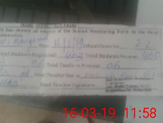 | Attendance Register | Head Teacher | MEA with School | Visit Proof |