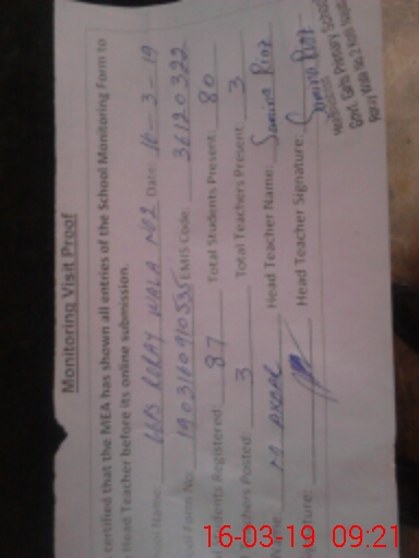 | Attendance Register | Head Teacher | MEA with School | Visit Proof |