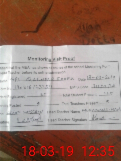 | Monitoring Date: 18-03-2019 | Start Time: 18-03-2019 11:39 AM | End Time: 18-03-2019 12:35 PM | Name of MEA: Al**** Hu**** BN**** | |