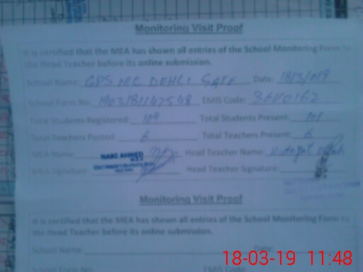 | EMIS Code: 36110162 | Name of School: GPS MC DEHLI GATE MULTAN | |||