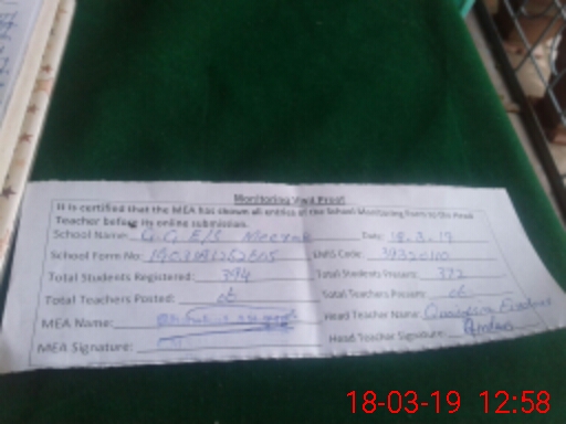| Certified that this School was Inspected by the Undersigned MEA/DMO Today and the Information Stated Above is as Per Record. | |||||