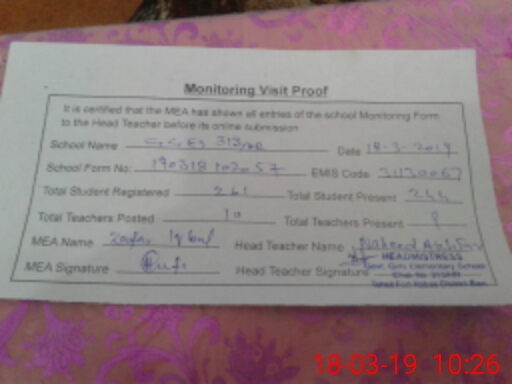 | Certified that this School was Inspected by the Undersigned MEA/DMO Today and the Information Stated Above is as Per Record. | |||||