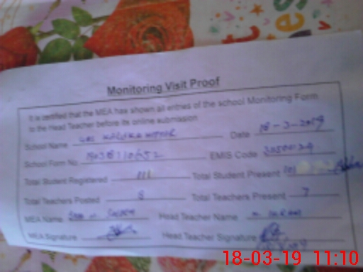 | Attendance Register | Head Teacher | MEA with School | Visit Proof |
