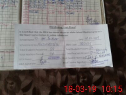 | Total no. of Classrooms: 2 No. of Classrooms Used for Teaching: 2 No. of Classrooms Storing Old Furniture, FTBs, etc: 0Comments if Any: TEACHERS ARE 6 POSTED BUT IN TAB RECORD ARE 5 ESE RUQEEYA NAME IS NOT AVAILABLE IN MEA TAB HEALTH NUTRITION AFSHAN AFROZ FEB VISIT NIL LND FEB 2019 IS NOT SHOWN DUE TO CONCERNING TEACHER IS ON EXAM DUTY |