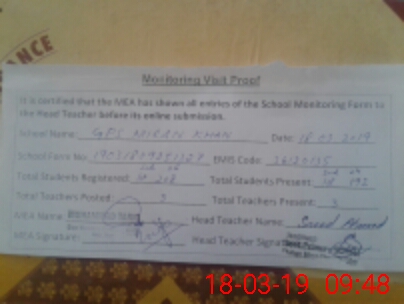 | Attendance Register | Head Teacher | MEA with School | Visit Proof |