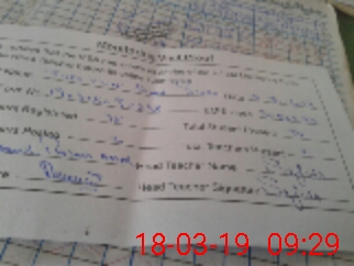 | School Visited by School Health & Nutrition Supervisor (No. of Visits) | 1 | Name1: | MUHAMMAD ADNAN | Name2: | |
