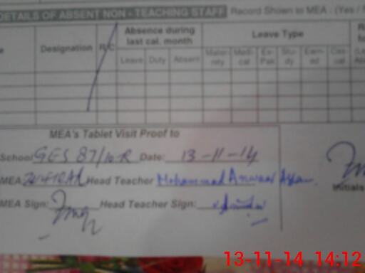 | Attendance Register | Head Teacher | MEA with School | Visit Proof |