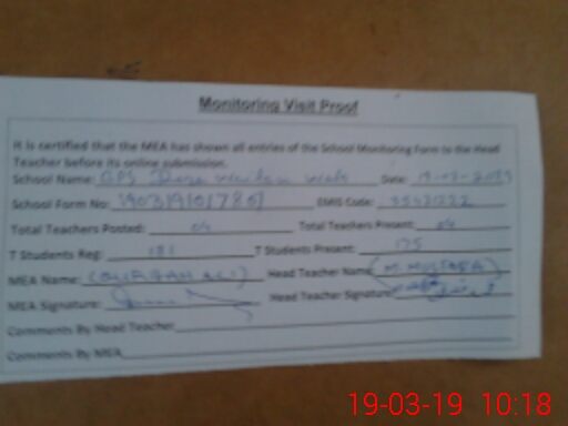 | EMIS Code: 35431222 | Name of School: GPS DERA WAILAN WALA | |||
