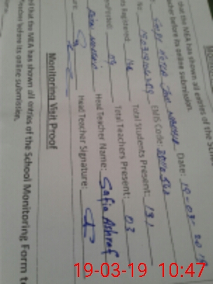 | Certified that this School was Inspected by the Undersigned MEA/DMO Today and the Information Stated Above is as Per Record. | |||||